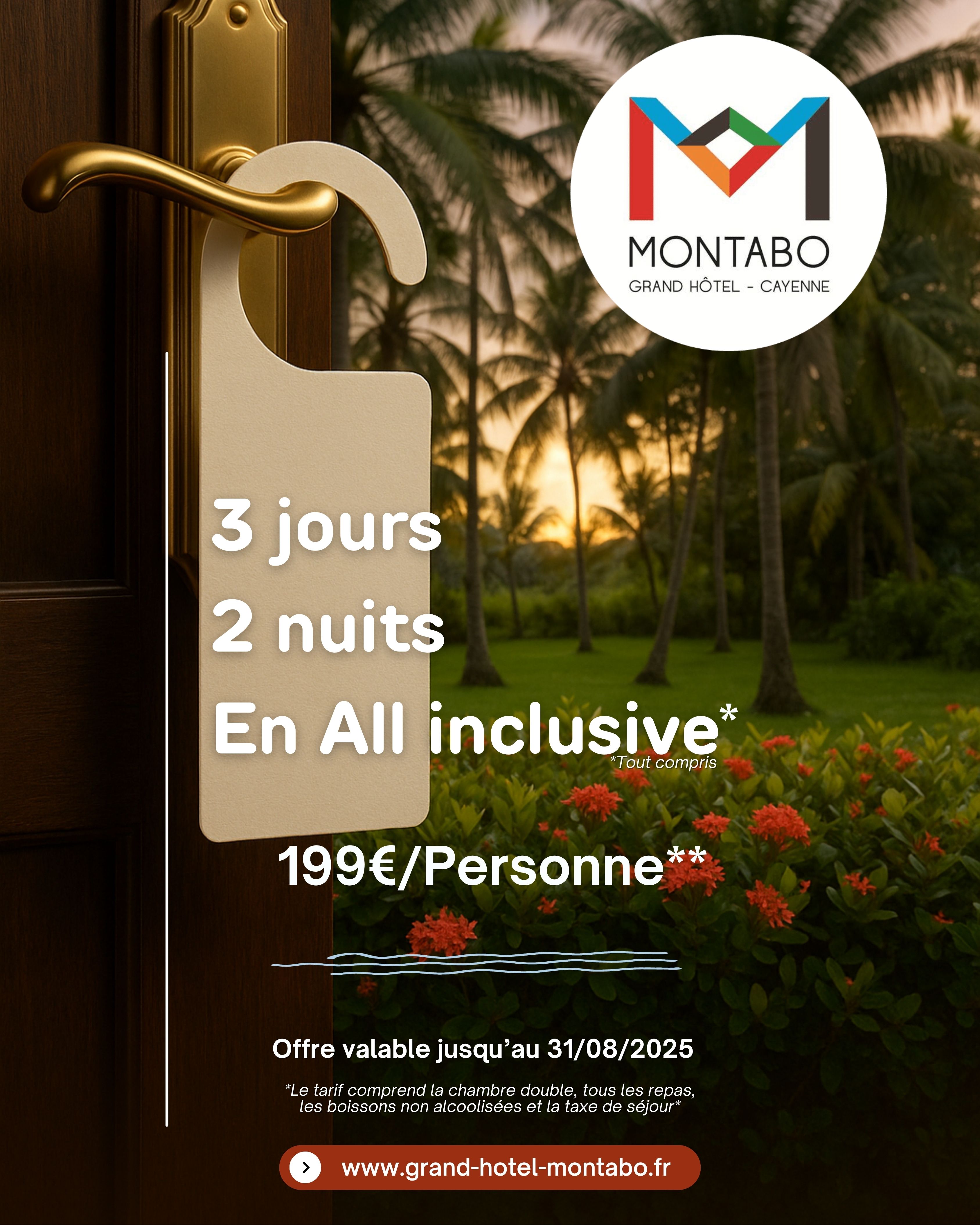 Piscine extérieure, bar, restaurant, salles de réunion : ici tout a été pensé pour vous faire vivre une expérience inoubliable et dépaysante au cœur de Cayenne. Alors posez vos valises et savourez : le Grand Hôtel Montabo s’occupe de tout !